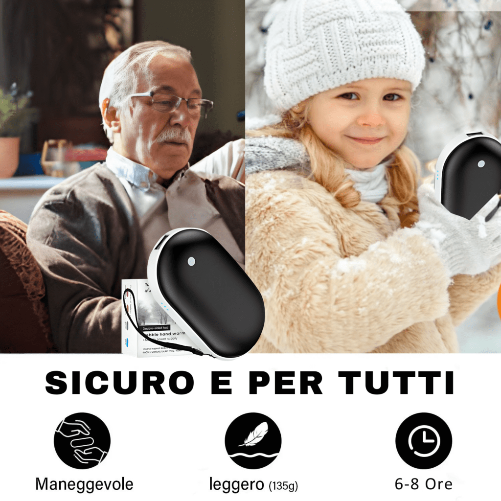 “Arrivato ieri!  La sua dimensione compatta lo rende incredibilmente pratico: posso metterlo in borsa o  in tasca. Ma la cosa che mi ha davvero colpito è il calore che produce. È un calore intenso e costante che mi avvolge subito, offrendomi un comfort continuo ovunque mi trovi. ”